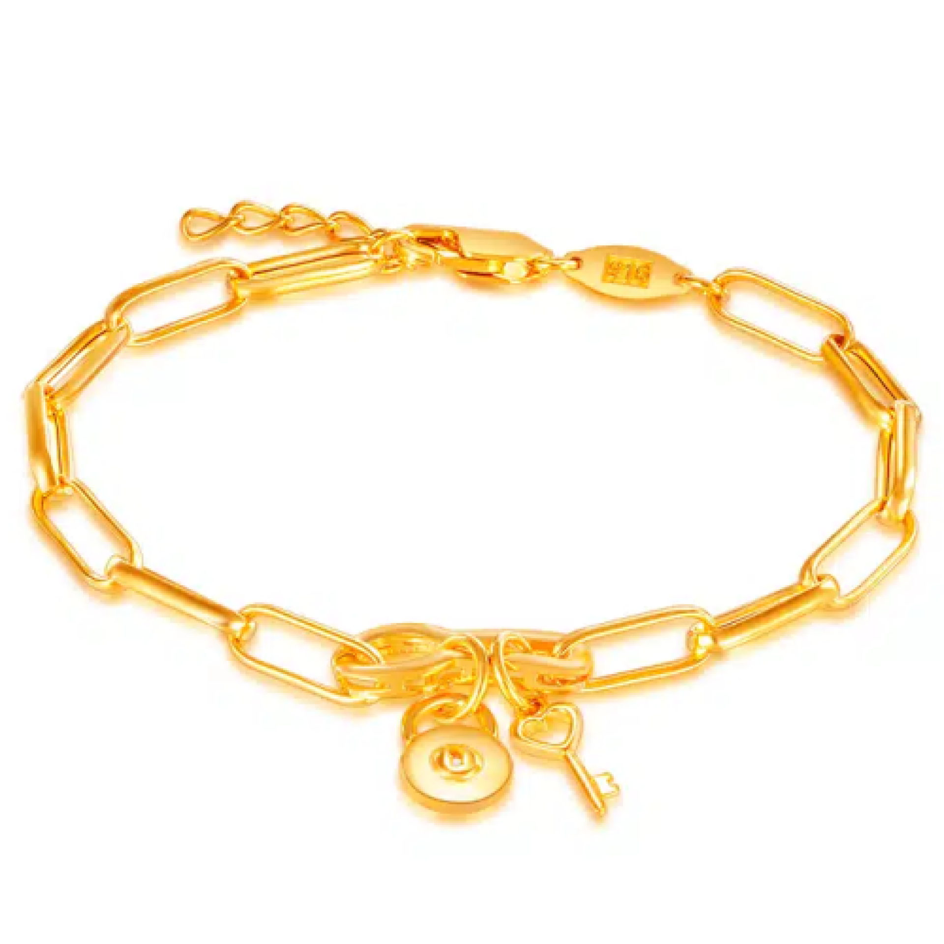 Stylish and bold, this unique bracelet is perfect for the modern woman. Go beyond the classic paperclip chain - our Secret Door gold bracelet features a keyhole-shaped link, adorned with charms of a lock and key.